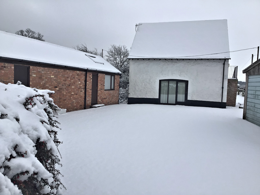 I was recently at the Barn and my sister and I took a new year walk down Sink Lane with The Rhydd’s dog Summer. Sink Lane is a quiet lane with minimal traffic which leads between fields with views to the Malvern Hills. Below are two photos: one taken from Sink Lane and one taken from the driveway of Rhydd Barn.